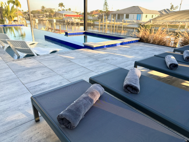 Unser grosser, beheizbarer Salzwasserpool hat einen Whirlpool/Hottub, Wasserliegen auf dem Sun-Shelf im Pool, Pool-Sitzbank über die gesamte Länge des Pools und eine 6 Meter lange Infinitypoolkante. Die Aussicht auf das Bootdock und den Kanal ist einfach toll. Unser Haus liegt im modernen Nord-Westen von Cape Coral, eine Gegend, die erst vor einigen Jahren so richtig entwickelt wurde und daher überwiegend aus neuen und modernen Häusern besteht. Eine sichere und schöne Umgebung, durchzogen von einem Süß- und Salzwasser Kanalsystem. PatricksVilla liegt an einem breiten Salzwasserkanal, in dem Sie unter anderem Fische und Seekühe sehen können. Mit unseren Kajaks, die wir für Sie kostenlos zur Verfügung stellen, sind Sie in kurzer Zeit in den Mangroven von Matlachee und im Golf von Mexico. Wenn Sie die Nachbarschaft vom Wasser erkunden wollen, dann gibt es wohl keine bessere Möglichkeit, als das von einem Boot durch die Kanäle zu machen. Nicht umsonst wird Cape Coral das Venedig der USA genannt. Jedes Detail des Hauses wurde von uns persönlich geplant und ausgesucht, so auch der Pool und das Bootdock. Das Haus wurde von uns modern eingerichtet und bietet alles, was man zu einem aussergewöhnlichen Urlaub benötigt. Schon bei der Planung und dann während der Bauarbeiten, waren wir einhunderprozentig involviert und haben darauf geachtet moderne Akzente mit jeglichem Komfort zu verarbeiten. Sauberkeit und Qualität stehen bei uns ganz oben. Unsere Gäste werden von uns immer persönlich betreut und beide Häuser auch fast immer von uns gereinigt und für die nächsten Gäste bereitgestellt. Sie sprechen nie mit einer Vermietagentur, sondern immer mit uns, den Besitzern. Sollten Sie besondere Wünsche haben, dann fragen Sie doch bitte einfach. |